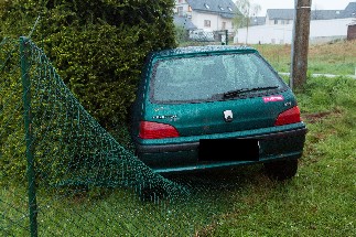 Am 28.04.2015 um 05:51 Uhr wurden wir zu einem Verkehrsunfall nach Seifersdorf auf die Lugauer Straße gerufen. Der Fahrer eines Peugeot 106 kam aus unbekannter Ursache von der Fahrbahn ab, prallte gegen einen Strommast und landete im Zaun. Es gab keine Verletzten.