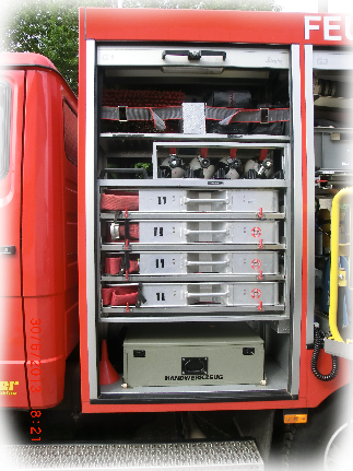 2 Pressluftatmer, 1 Dreiverteiler B/B CBC, 1 Stromerzeuger, 1 Leitungstrommel,
